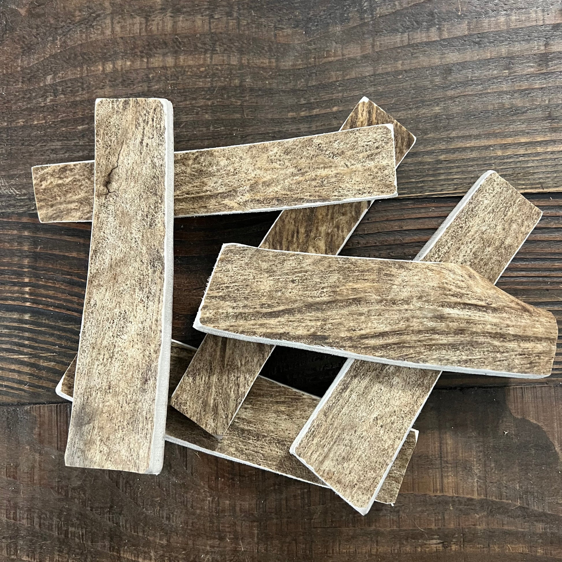 Large Moose Paddles are cut from the flat paddle portion of the moose antlers and are a less dense chew suitable for puppies, older dogs and lighter chewers. The marrow is exposed on multiple sides of the moose paddles with a thinner outer core of bone making them extra desirable for all the dogs in your pack. If you have a heavy chewer in your pack Moose Paddles will not be a good fit.