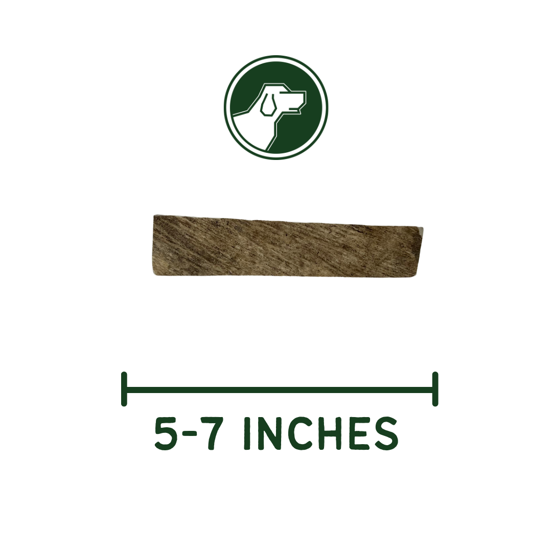 Medium Moose Paddles are cut from the flat paddle portion of the moose antlers and are a less dense chew suitable for puppies, older dogs and lighter chewers. The marrow is exposed on multiple sides of the moose paddles with a thinner outer core of bone making them extra desirable for all the dogs in your pack. If you have a heavy chewer in your pack Moose Paddles will not be a good fit.